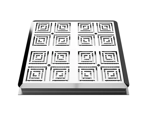 Ralo de sobrepor de acordo com a normativa ABNT NBR 10339-2018. Tamanho: 300x300mm. Não acompanha o contramarco (porém disponível para aquisição).