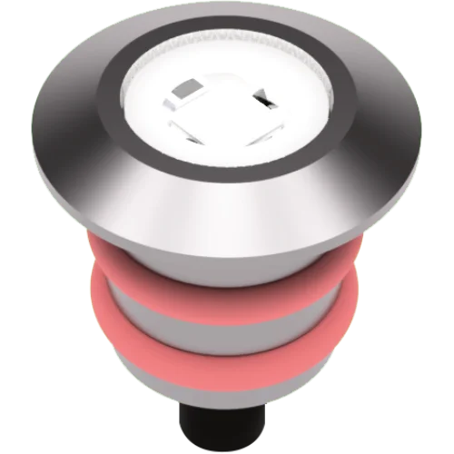 Seu design compacto em aço inox garante instalação discreta e sofisticada, tanto em áreas externas quanto internas.